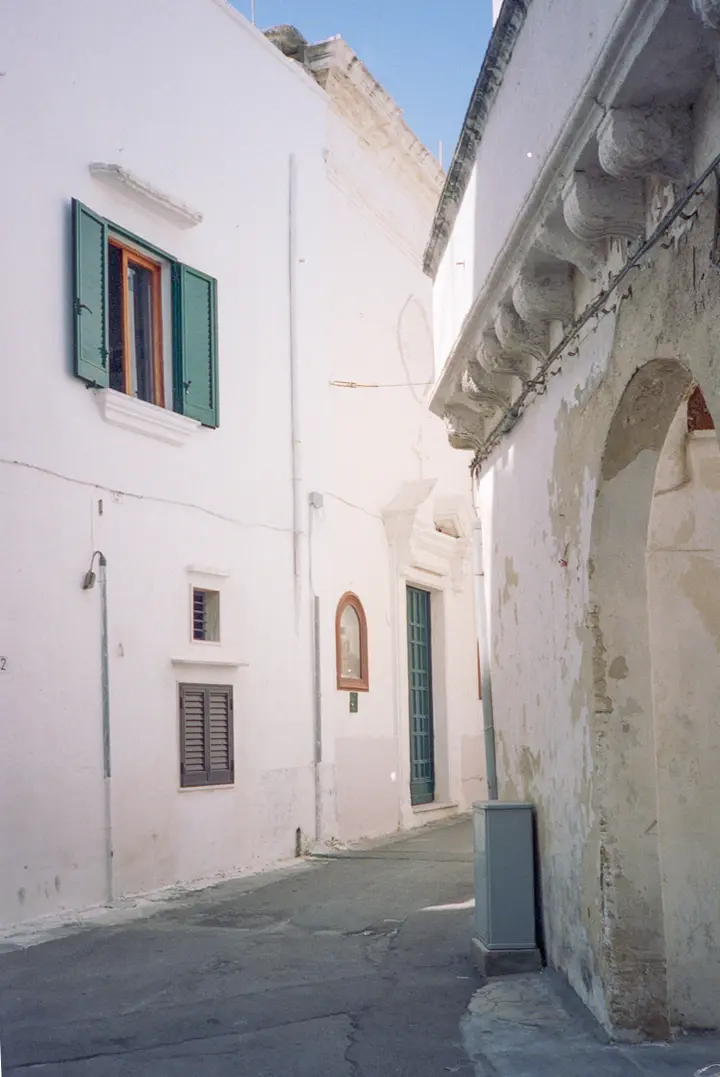 OK, dann hab ich noch Zeit für Ostuni. Ich finde die Touri-Info, doch die hat zu. Also ohne Stadtplan der Nase nach. Ich komme in ein Viertel mit hübschen, wenngleich modernen zweistöckigen Häusern. Geschäftige Frauen hängen Wäsche auf.