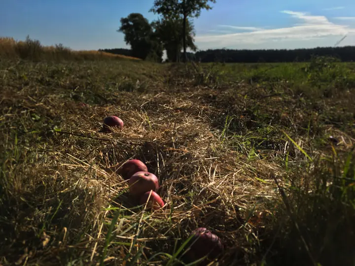 Da ich in der früh nicht gefrühstückt habe und mit sehr wenig Proviant unterwegs bin, sammel ich mir erst mal ein paar Äpfel vom Wegesrand. Diese wurden aber nicht verspeist, doch dazu später.