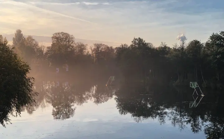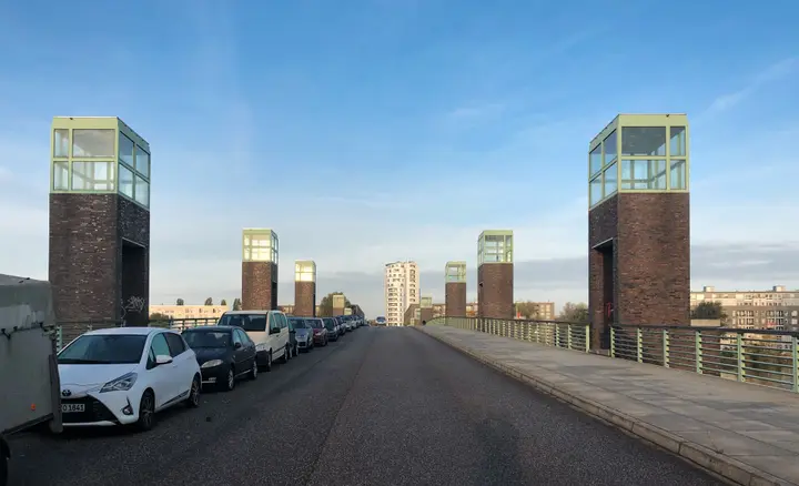 Direkt an der Brücke sind Wasssersportvereine ansässig; im Kanal sind Tore für Kanupolo angebracht.