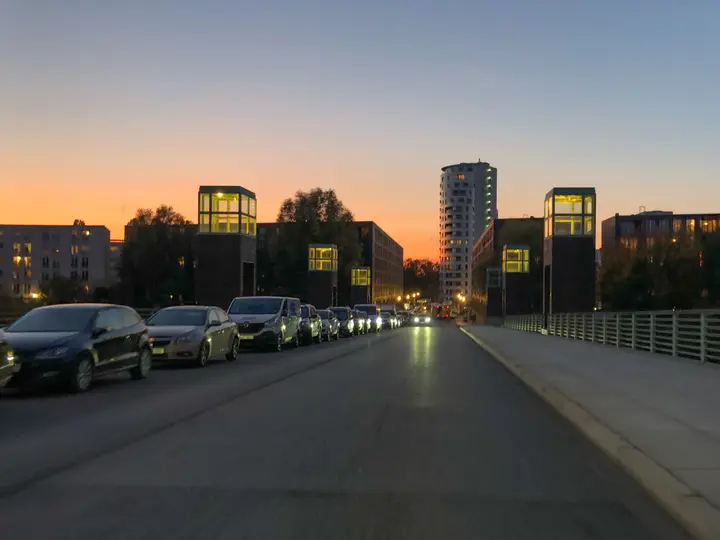 Nach 2 Kilometern Straßenverkehr geht es durch die Spandauer Wasserstadt Richtung Saatwinkel.